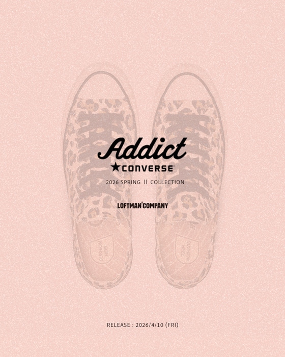 ADDICT(=依存する、中毒)が意味するとおりファッションコンシャスな人たちを魅了するCONVERSEの究極のシューズライン「CONVERSE ADDICT」。ヘリテージモデルをベースにクラシックなディテールやシルエットを踏襲しながらもヴィブラムソールやカップインソールを採用するなど美しく機能的に昇華させたアイテムがラインナップ。