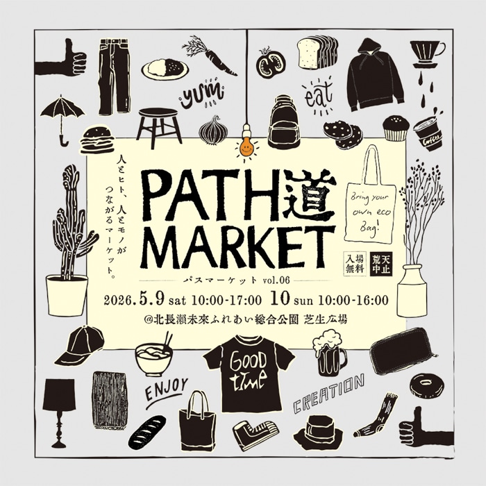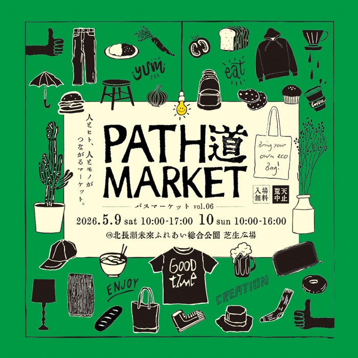 この度、5月9日(土曜日)、10日(日曜日)の二日間、岡山県 ・北長瀬未来ふれあい総合公園 芝生広場にて開催される<PATH MARKET vol.06>に初出店させていただきます。