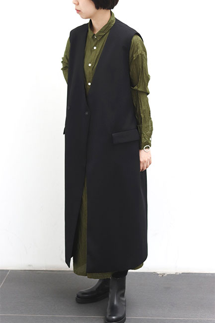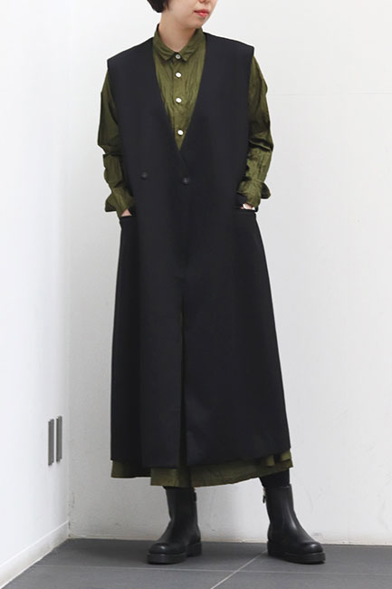 Viscose Wool Silk Gabardine Sleeveless Wrap Coat が入荷しております。