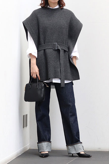 Fine Wool Rib Knit Crew Neck Belted Vest のご紹介です。