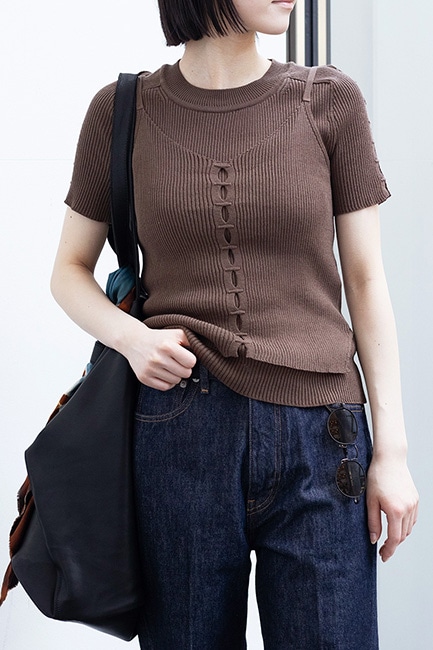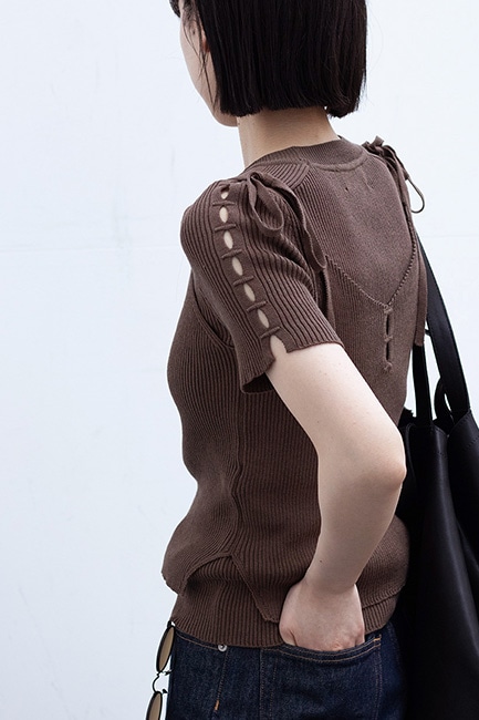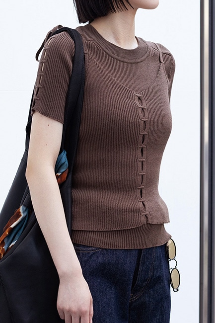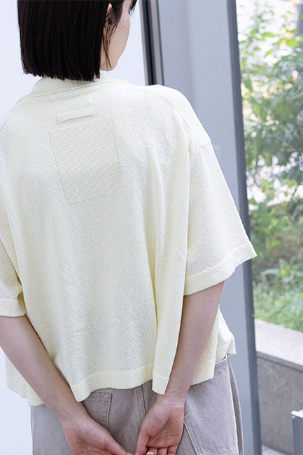 強撚糸を使用し、Rib Intarsia Slit S/S Pullover