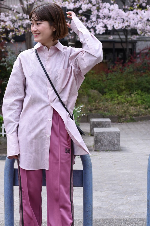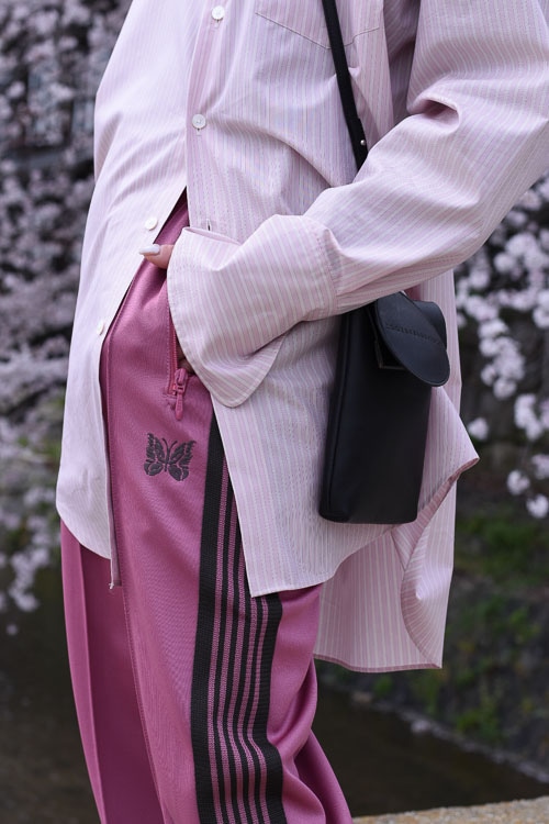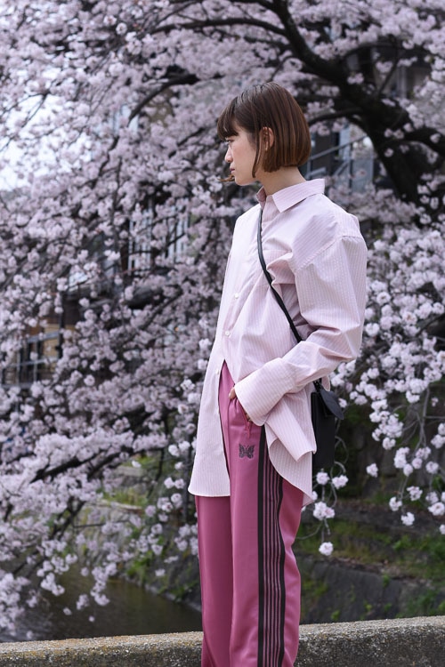 そんな華やかな桜に合わせた、わたしの休日にしたいトラックパンツのスタイリングです。