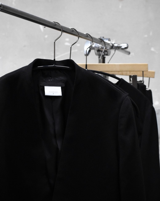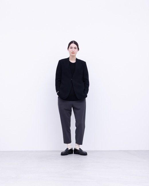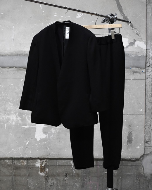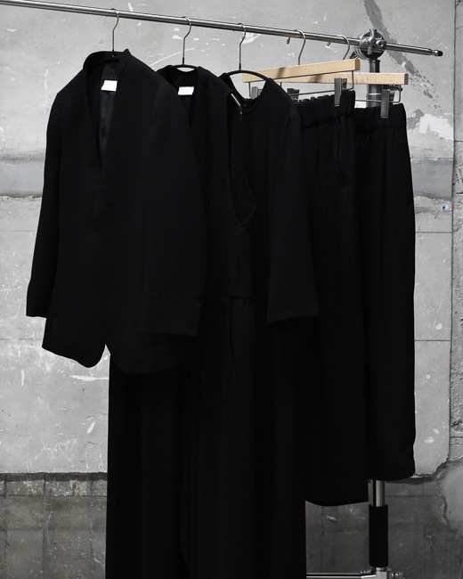 定番のフォーマルシリーズ「アセテート&ポリエステル・ライトクレープダブルクロス」からはサイズ展開を広げてセットアップ。