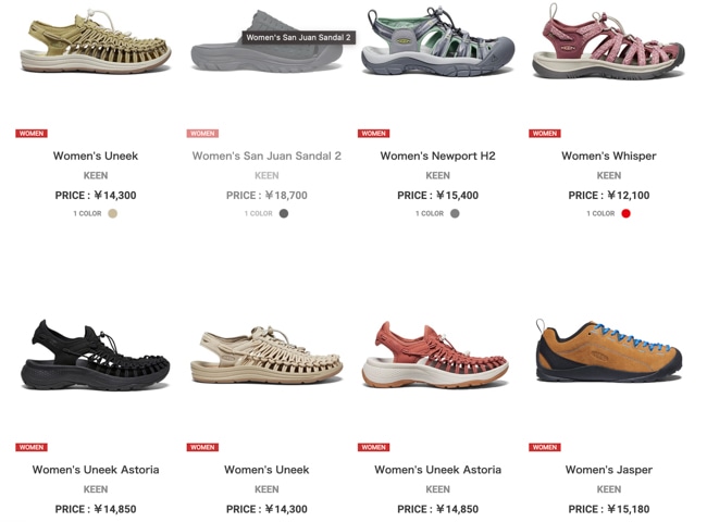 現在、'Ohana店の最前列には数多くのKEENをご用意させていただいております。