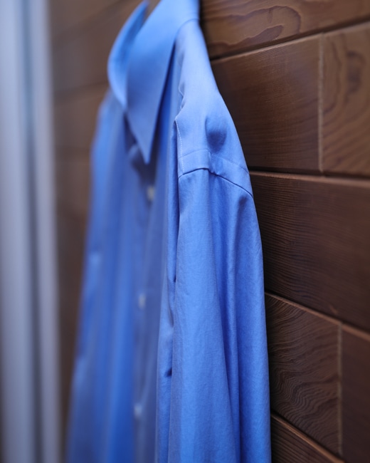 定番モデル、WASHED FINX TWILL SHIRTから。