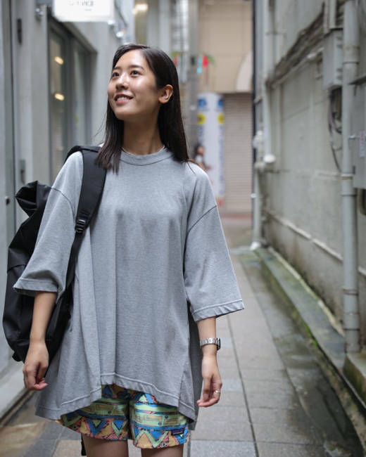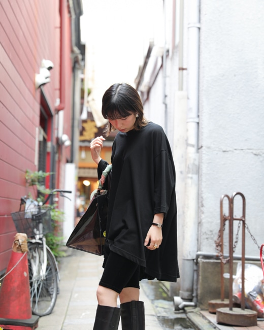 シンプルなクルーネックながらもオーバーサイズ、7分袖のシルエットが特徴です。