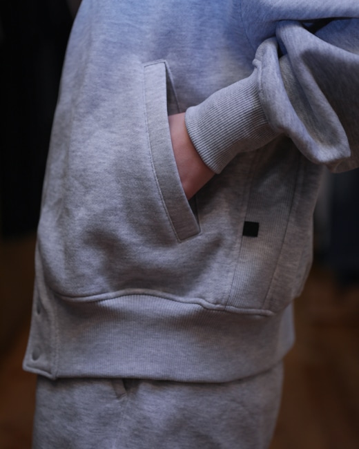 ベースボールジャケット型スナップカーディガン&スエットパンツです。