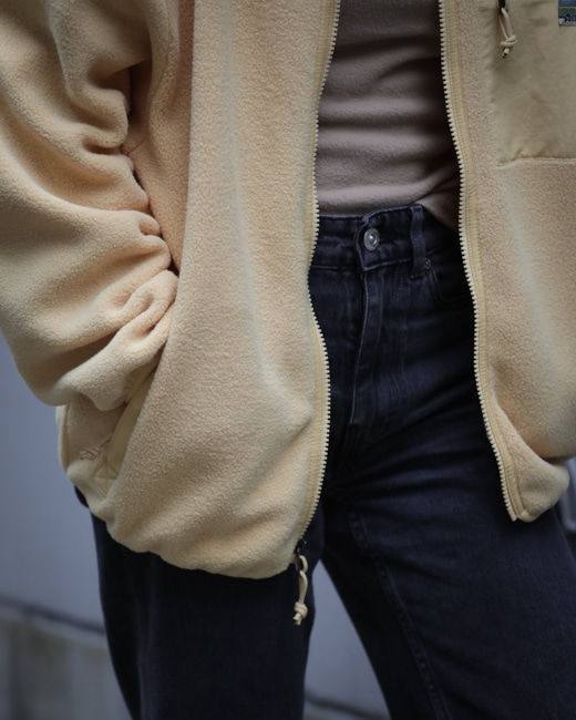 ゆったりとしたフルジップのSynchilla Jacketはリサイクル ポリエステルの両面フリースで作られており汎用性も高く、抜群。