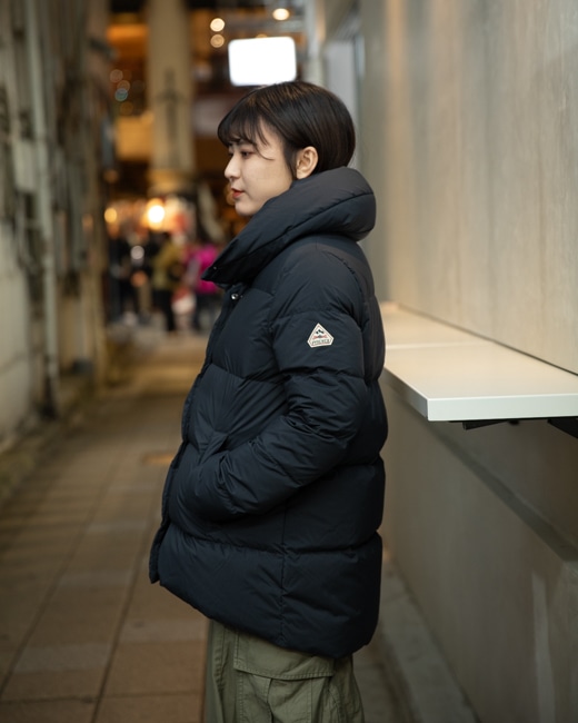 また前後差を付けた裾をラウンドさせて全体的に柔らかい印象のダウンジャケットに仕上げられた一着です。