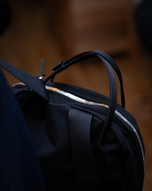 背面にはファスナーで開閉できる独立したスペースがあり、すぐに取り出したいものを収納するのに◎。