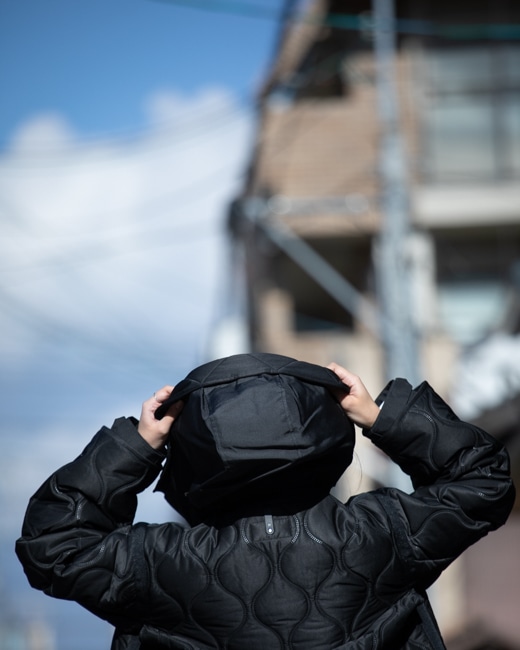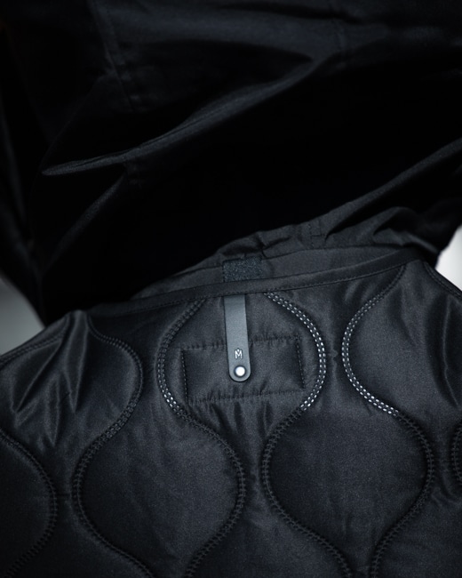 ヒートスタンプキルティングを全面に施し、2層構造のレイヤーを取り外すことでマルチWayとして着用可能。