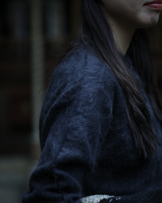 その貴重な原料を大切に使うため、美しい水での加工と、原料ロスの少ないホールガーメント(無縫製)で編み立てられた一着です。