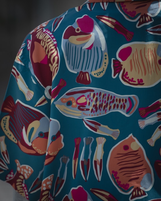 島の生態系をモチーフにしたプリントを含み、