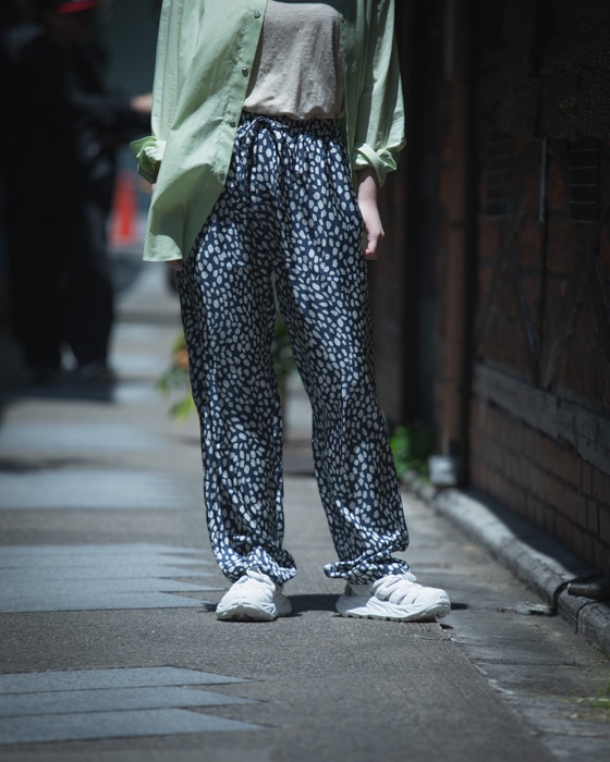 シンプルで上品なネイビーベースのボディとチーター柄のコンビネーションは