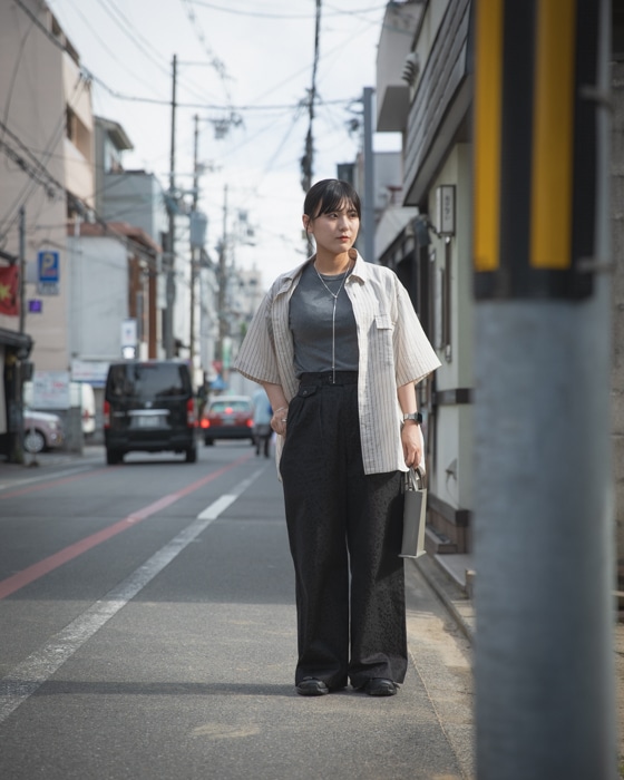 今回はブラックの柄物と同系色でスタイリングさせていただきましたが、