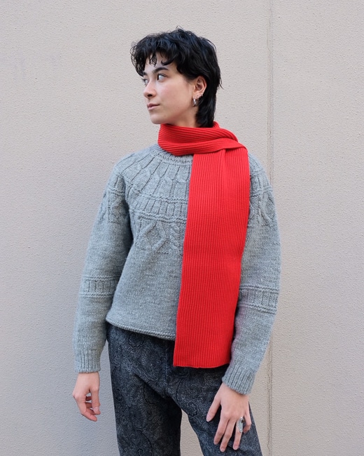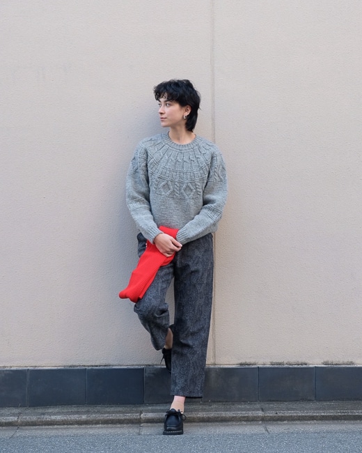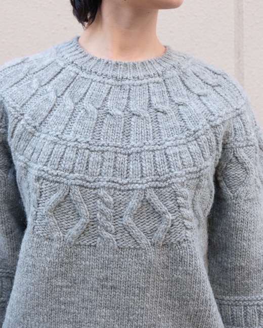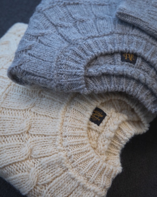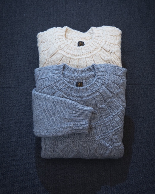 シェットランドウールをローゲージで編み立てたアランニット。