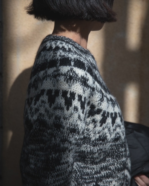冬らしさ満載、ノルディック柄のニット。