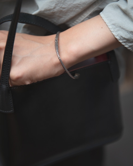 スクエアスリーブの組み合わせが力強くも計算された印象を与えます。