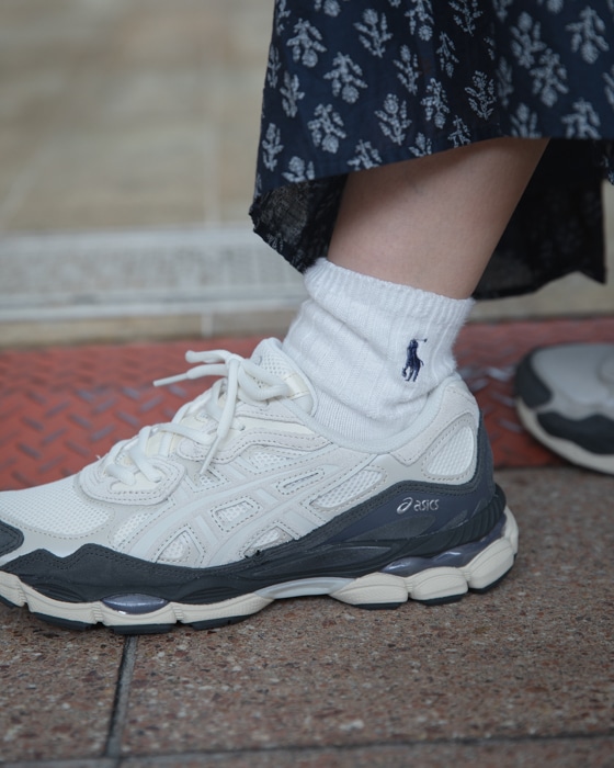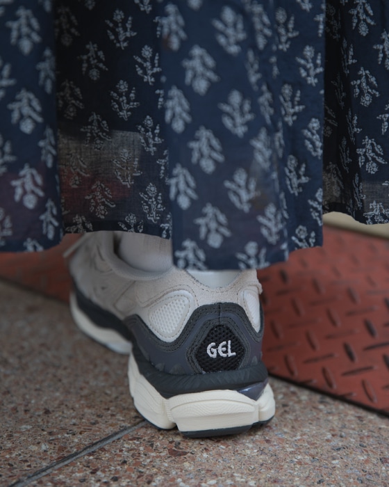 ソールにはGEL-CUMULUS 16のツーリングシステムを使用し、レトロな雰囲気とコントラストを表現。