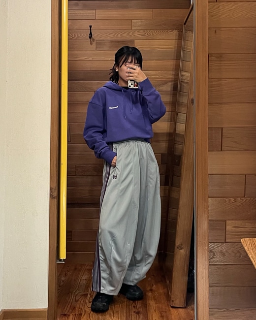 ブルー×オレンジの組み合わせ。普段は靴下や小物で取り入れるけれど、NEEDLESなら大胆に配色したいと思えます。