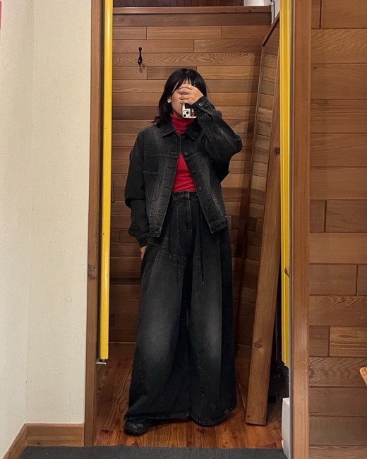 昨シーズン登場したH.D.バギーパンツ。形が本当に綺麗で、脚長効果バツグン。ブラックデニムのセットアップには、色モノを中に仕込みたいなぁということで、手持ちに何枚あってもいいGicipiのインナーから赤タートルをセレクト。