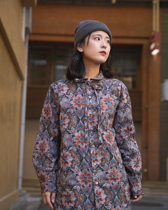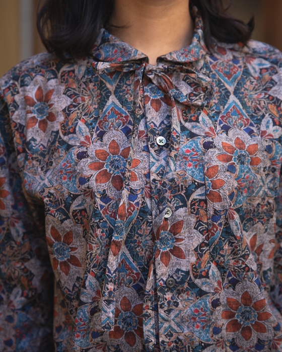 首元のリボンも柄モノのシャツなのに、ディテールが細かくて秀逸です。