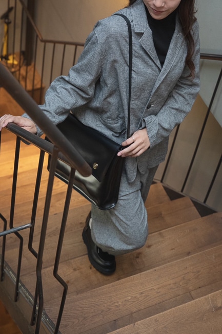 裏地がついていない分軽量で、生地もざっくりと織られているのでゆるっと気楽に着ていただきたいセットアップ。