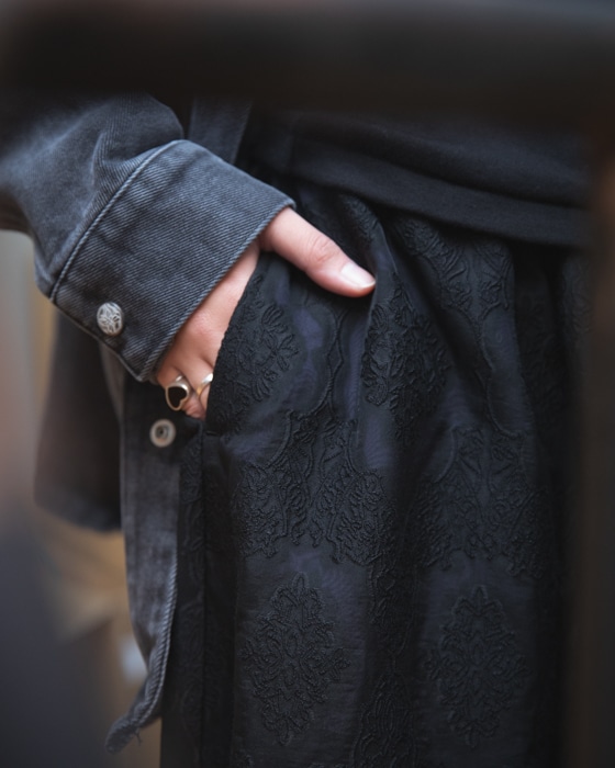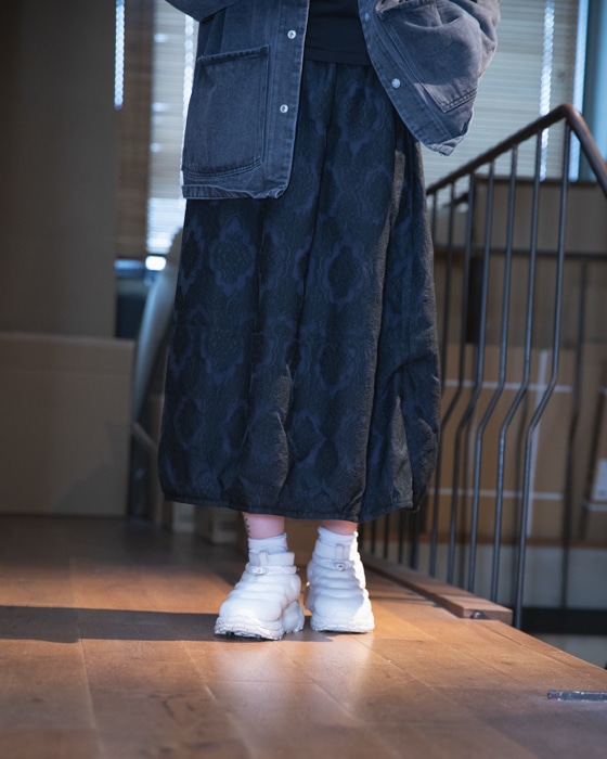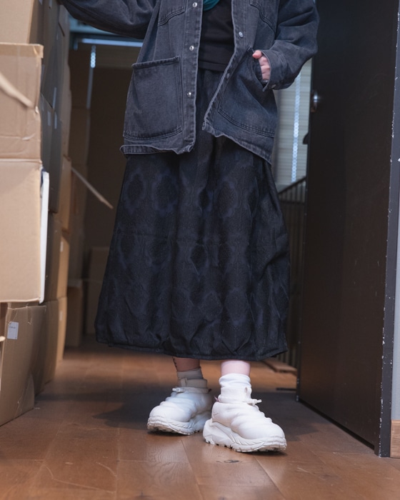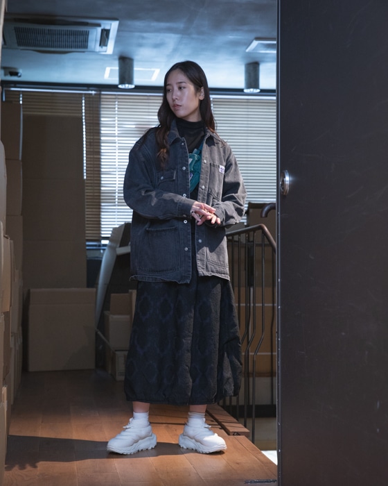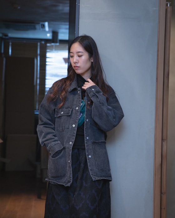 今回はムーディなスカートに、デニム素材のカバーオールをスタイリングさせていただきましたので宜しければ、ご覧くださいませ。
