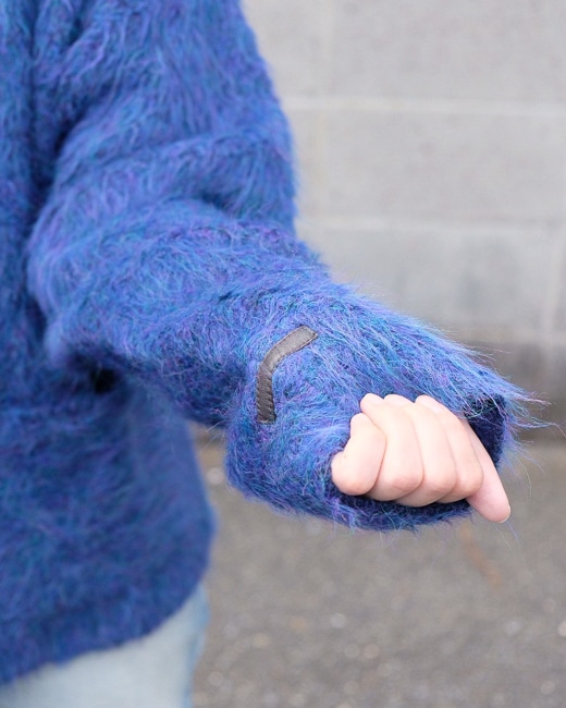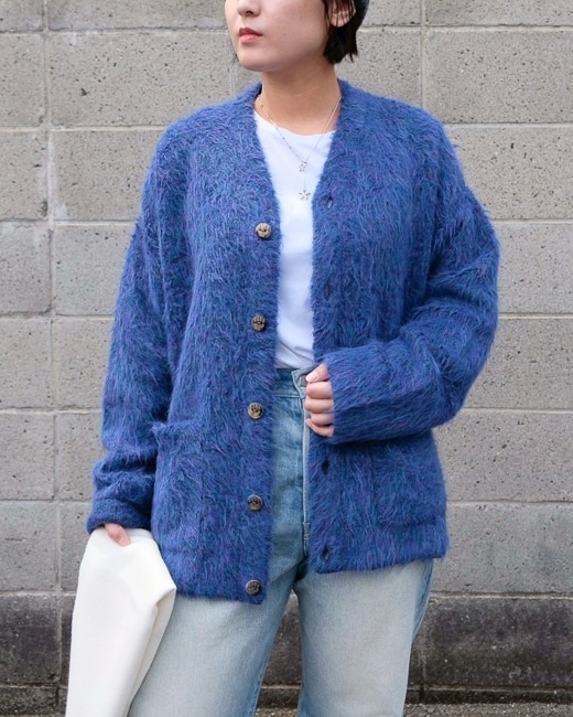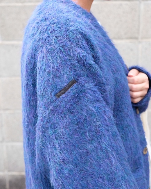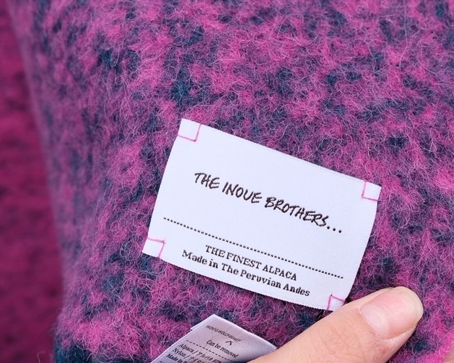 アルパカ全体の10%未満、希少品種「スリ種」を贅沢に使用したカーディガン。写真からもわかる通り、毛足が長いことが特徴です。