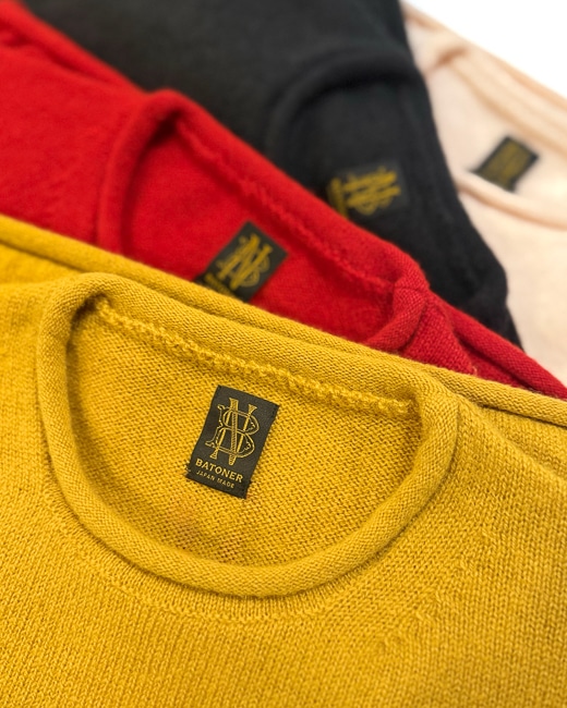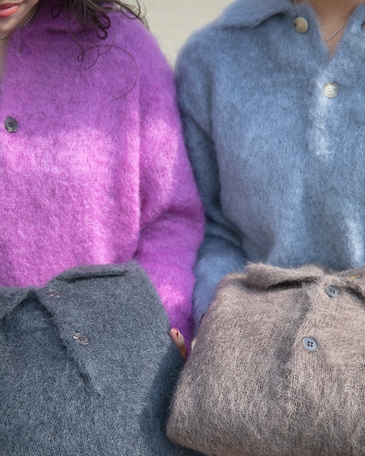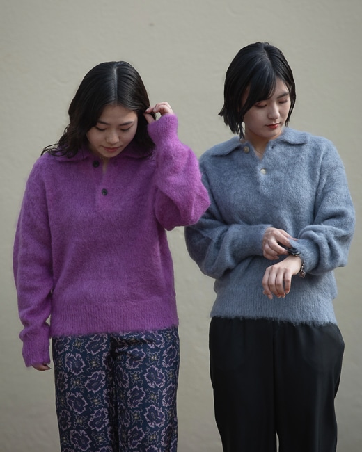 こちらも色選びにワクワクできる一着。カラバリ豊富です。スーパーキッドモヘアのみで構成したBATONER独自のモヘア100%シリーズ。イベント限定で、ポロニットが入荷しております。