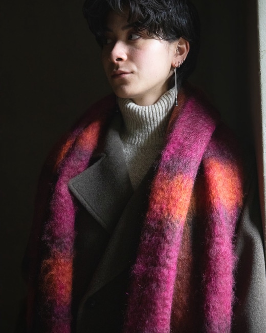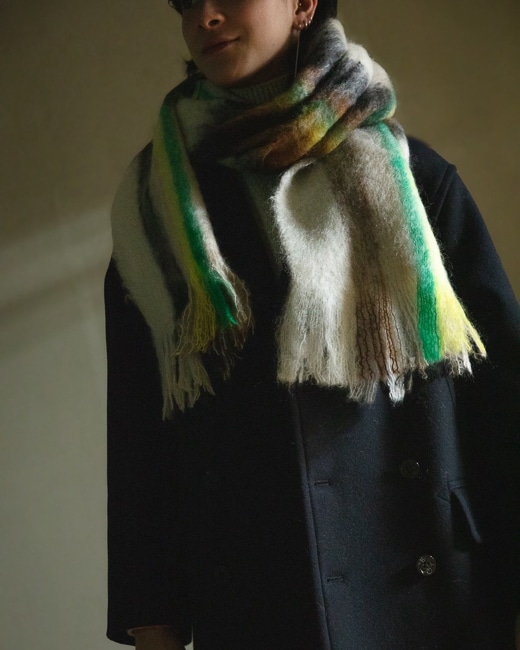 仕上げに発色のいいマフラーと合わせて、最高の冬の装いの完成です。