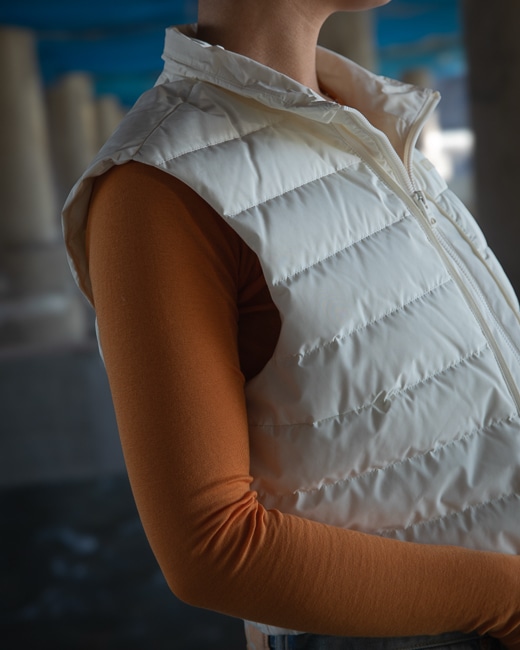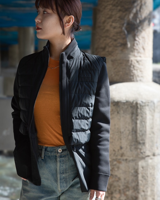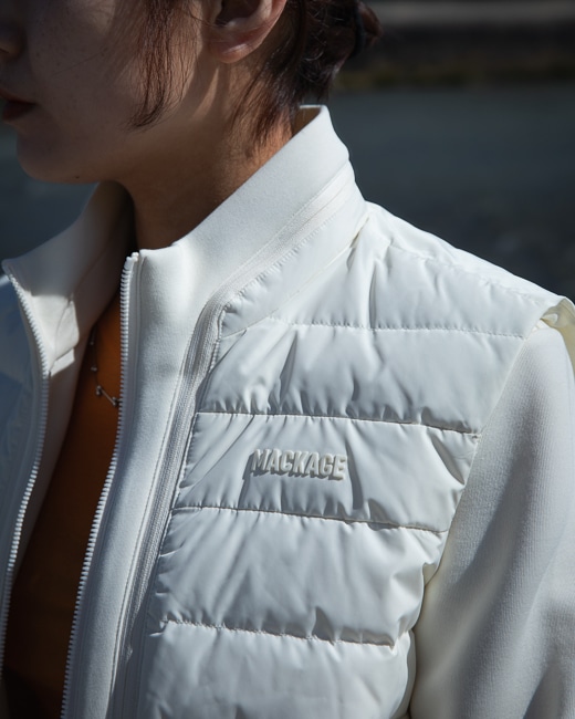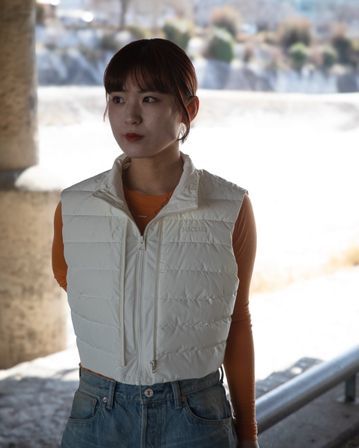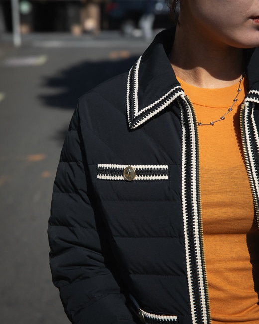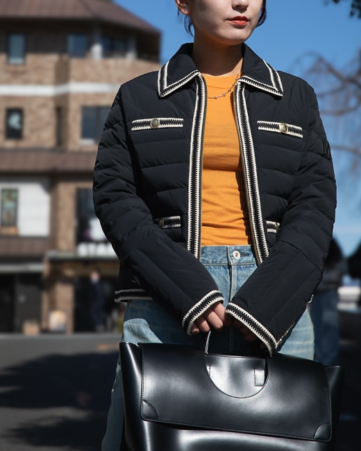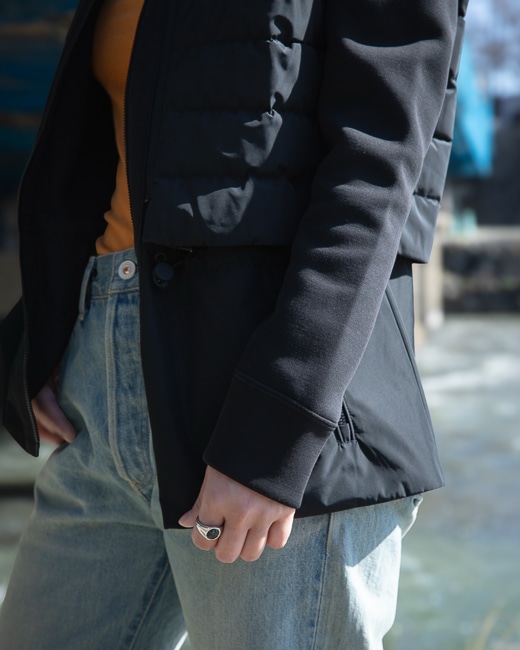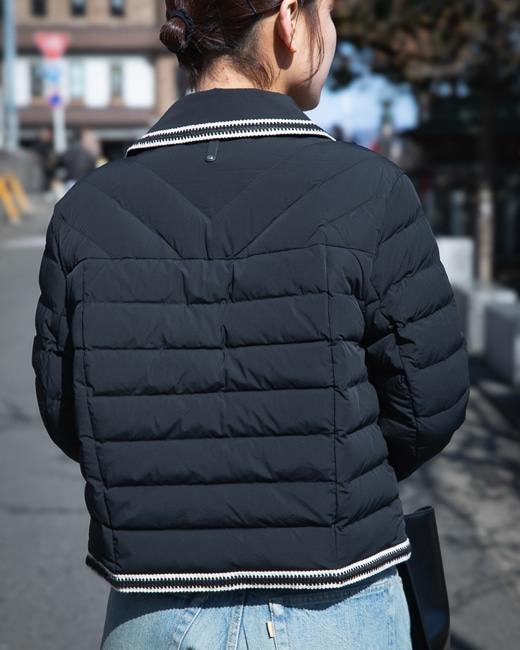 GRS認証のリサイクルダウンを使用しており、-5℃まで保温性を発揮しながらも、フェミニンなシルエットを実現。