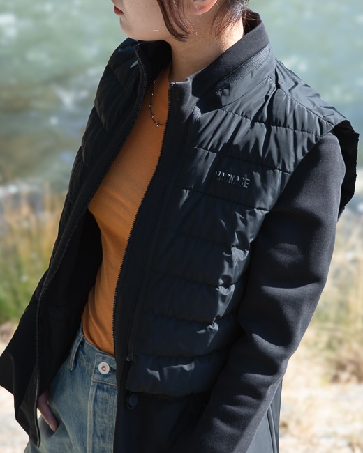 インナーとベスト両方に撥水加工がされており、急な小雨にも対応できます。