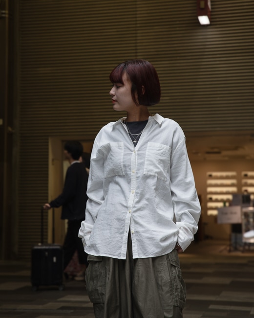 ロゴなしなのでスタイリングを組みやすい点も個人的に好き。今の時期なら、シアー素材のロンTや、プリントTとのレイヤードを楽しみたいですね。