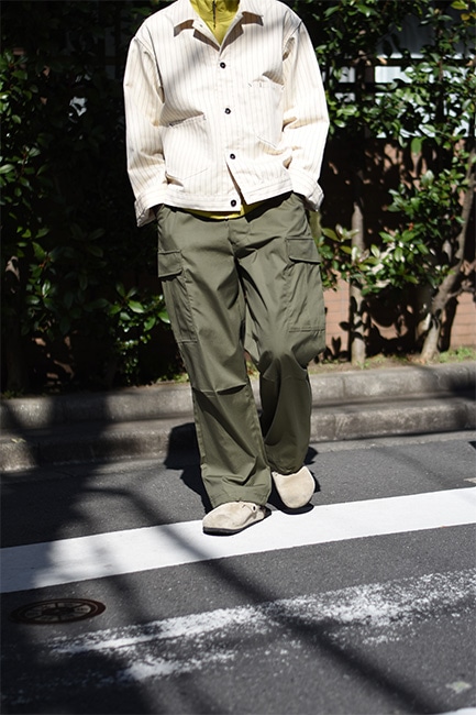 そのスビンコットンを使用し、元々熱帯地域で使用することを目的として開発された「ジャングルファティーグ」を作成致しました。