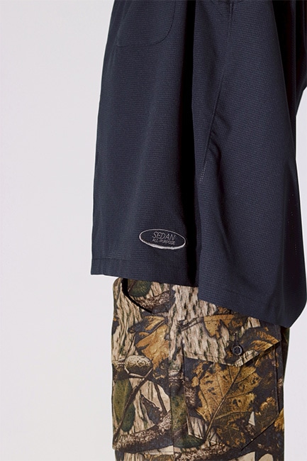 過酷な真夏の気候に対応できるよう、素材の持つギア的な機能性はしっかりとキープ。一方で、スタイルはあくまで王道のアメカジ。定番で支持されている開襟半袖シャツとキャップの型をベースに、DotAirファブリックを落とし込みました。