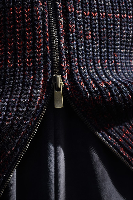 着用サイズとしては、いつもの彼(178cm/60kg)で2。アーム・身幅共にゆとりを持たせているので、一枚で着るのは勿論のこと、ニットブルゾンなので、ワンサイズ上げてアウターとしての用途でも使って頂きたい。もっと寒くなったら、その上から重ためアウターでサンドしてあげて下さい。アウトドアでいうミドルレイヤー的立ち位置。