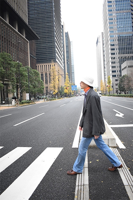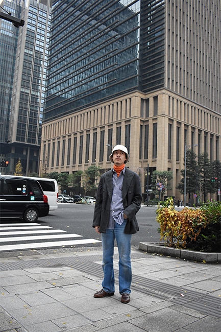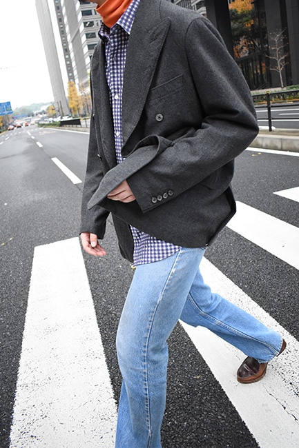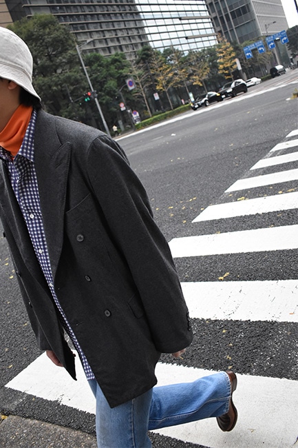 サイズ感は、緩すぎない丁度良いフィット。柄とカラー、あとはポケットディテールが相まって一枚でも、中に仕込んでも新鮮に映ります。