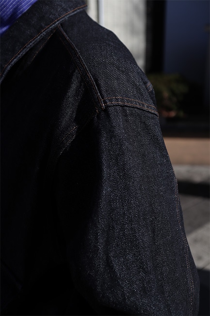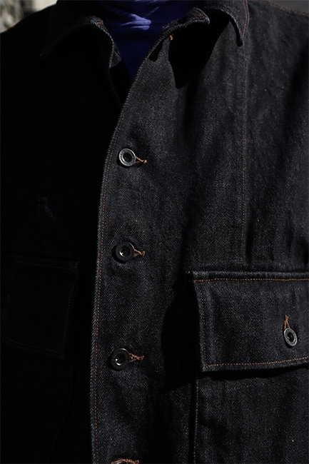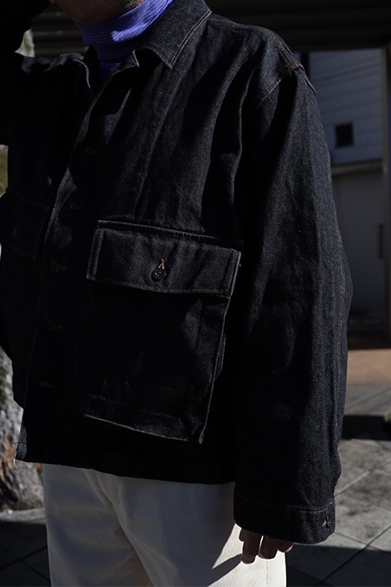 先日ご紹介させていただきましたEx. TC Corduroy Loose Slacksの上に着ていたこのジャケット。EGのインラインで12oz Cone Denimとして出ていましたが、WORK DAYで今回別注。当店舗で取り扱いしていたRF Jaeansの14oz Cone Denimの生地を、Sea Bees Jacketに載せました。アメリカ海軍建設大隊、俗に言うシービーズが独占的に使用していたジャケットをベースとした一着。シンプルなデザインながら、使い勝手の良い大きめのフラップポケットがアクセントに。最初は硬めですが、着て洗い込んでいくごとに柔らかくなっていき、アタリ、スレを楽しんでいただけます。洋服なんて結局気を遣うものより、こういったガシガシ着て雑に扱える洋服が一番楽だし、格好良い。