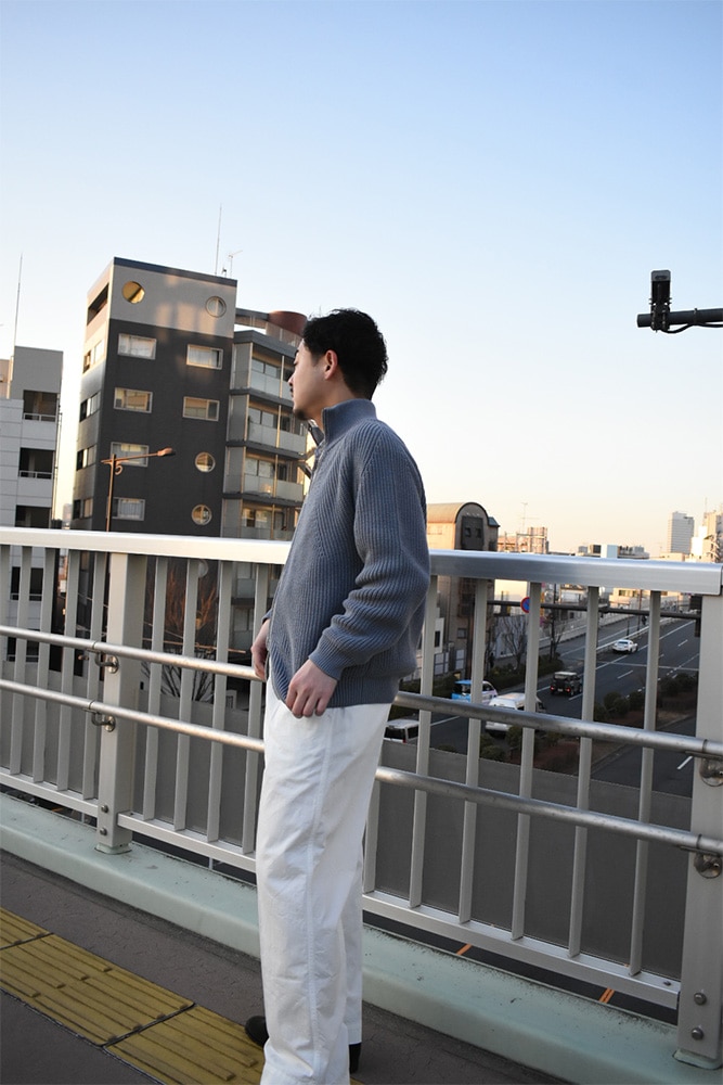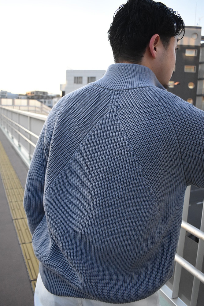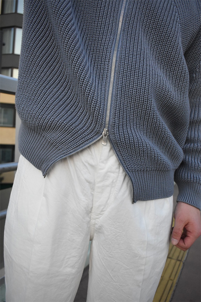 定番どころが入荷してきています。他のブランドは金額が上がり続けているのに、BATONERはそこまで大幅に上がる事なく作り続けているのが本当に凄い。ファクトリーだからとかじゃなくて、これは企業努力の賜物ですね。正直説明するまでもないですが、軽くご紹介しておきます。このシグネチャードライバーズは、冬にはウールで、春にはコットンで展開している、ブランドの顔ともいえる逸品。手摘みのGIZAコットンをサイロスパンという特殊な紡績糸で編み立てたコットンを使用。サイロスパンとは、紡績工程で2本の粗糸を同時に撚り合わせる特殊な技術で製造された糸で、単糸でありながら、双糸のような強度と上品な光沢を兼ね備えています。ウールのドライバーズと違い、コットンのものは、カリッとした質感です。コットンのローゲージのものは、サイズ選びに気をつけて頂きたくて、重たさがあり、下に伸びやすいので、普段サイズ2を着られている方は1。3を着られている方は2で選んで頂いた方が今後長く着用してもらえます。