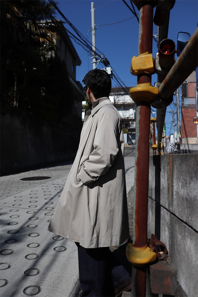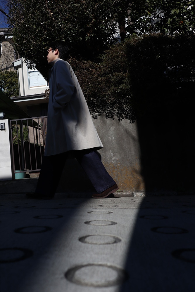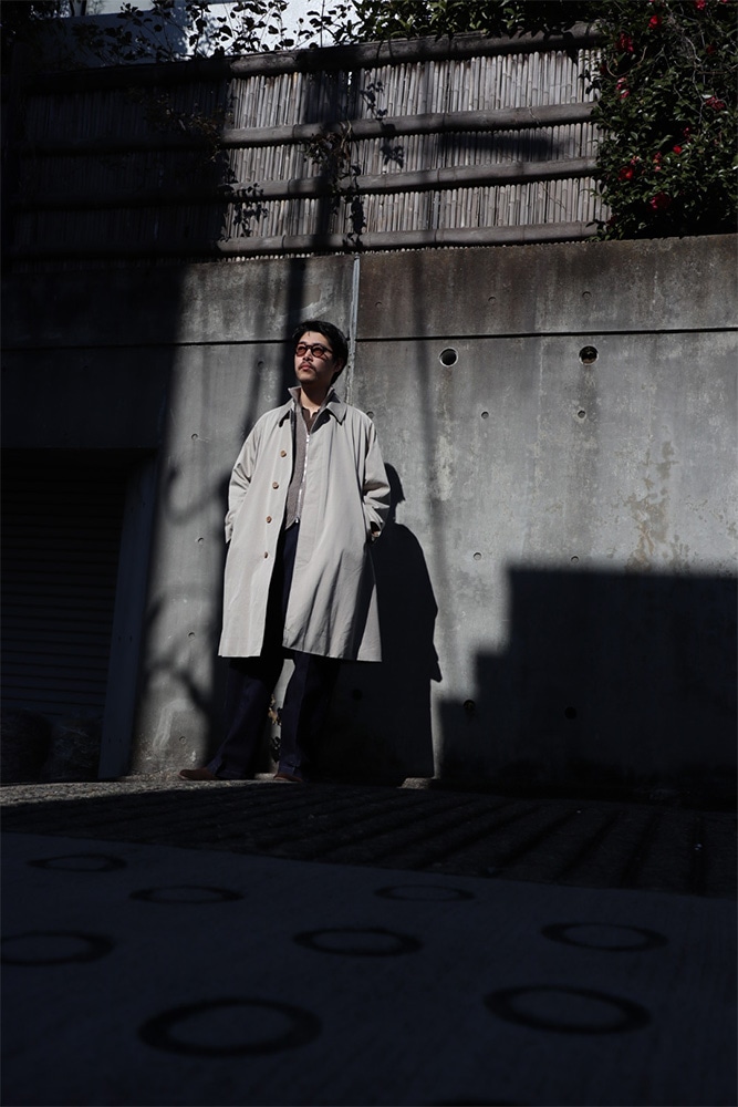 春コートって格好良いよなっていう話を最近していて、僕達だけなのかもしれないけど、春にコートを買うっていう考えがなく、コートを買うとなれば冬のウールコートばかり買ってしまいます。春先は軽めのジャケットか、上から羽織るにしても軽い化繊のアウター、パタゴニアのシェルとかその辺りを着ているので、春コートってなんだか憧れがあるんですよね。シャツに上からガバッとコートを羽織る感じ。格好良いよなあ。オーバーな物は気分では無いけど、ゆったりはしておいて欲しいっていう今の気分にズバでハマるんじゃないかな。ウォーカーコート。