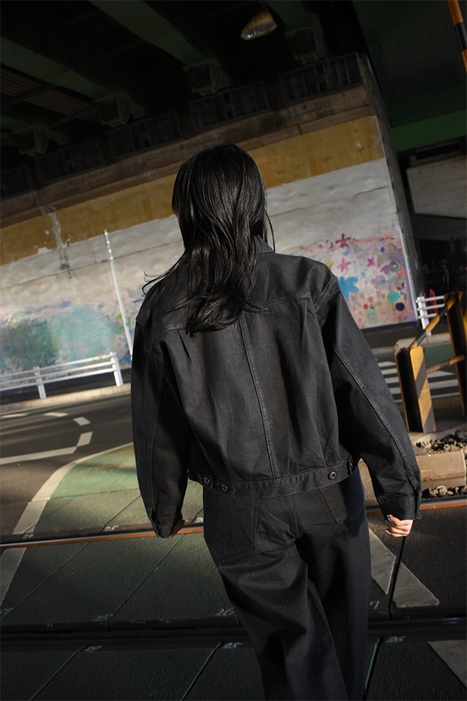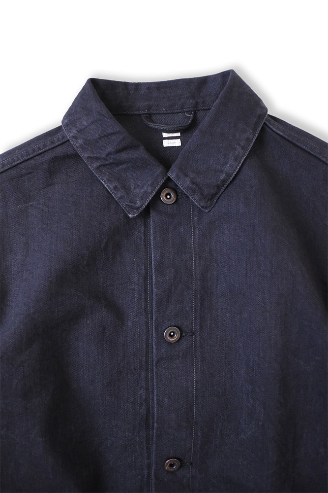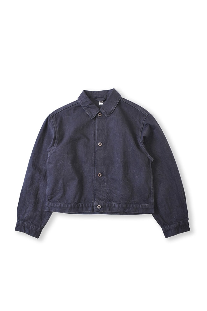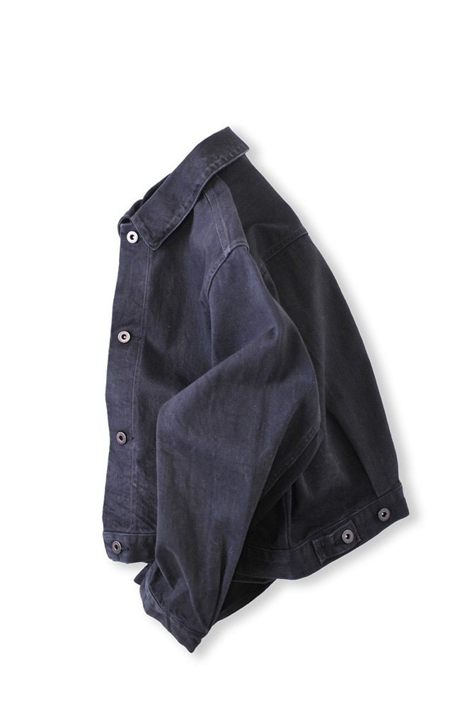 ヨークや切り替えといったディテールをあえて省き、ミニマルに仕上げたデニムジャケット。素材には、少しムラのある糸と落ち綿を使用したオリジナルデニム生地を採用しています。表面には強めの毛羽立ちがあり、デニムでありながらも独特の柔らかさと奥行きのある表情が魅力です。ワンウォッシュ加工を施しているため、最初から肌なじみが良く、自然な風合いをお楽しみいただけます。(※END ON END. Official Websiteより引用)