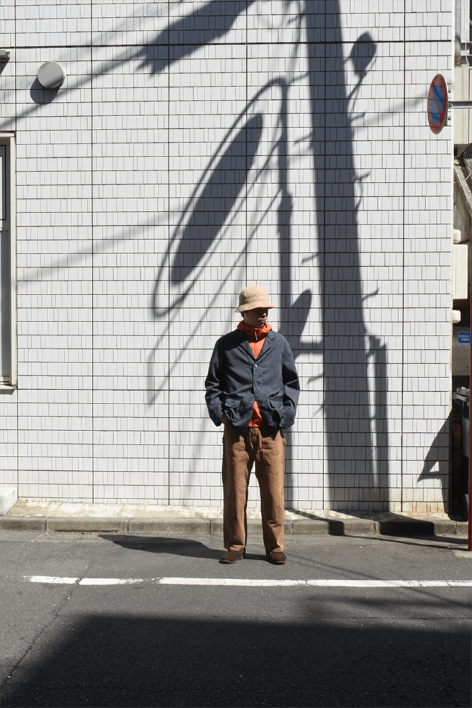 ブログ内で、いつもの彼と呼ばれているわたくし中西の身長体重は178cm/65kgで、SASSAFRASのウーリーノはM、吠えパンはLで着用。ご参考までに。