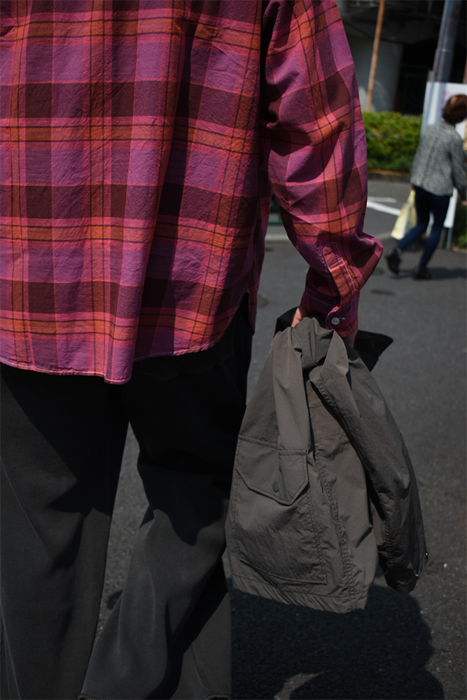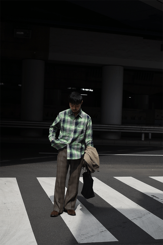 良い意味でブランドらしくないシルエットと縫製という印象。これまで東京店ではワークシャツの提案が多かったブランドですが、今回のシャツはとても綺麗。やや長めな襟にすっきりとしたサイズバランス。ガバッと羽織るような無骨なシャツではなく、生地感も相まって軽やかな夏のシャツという感じです。