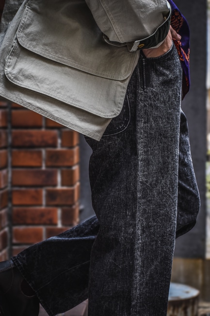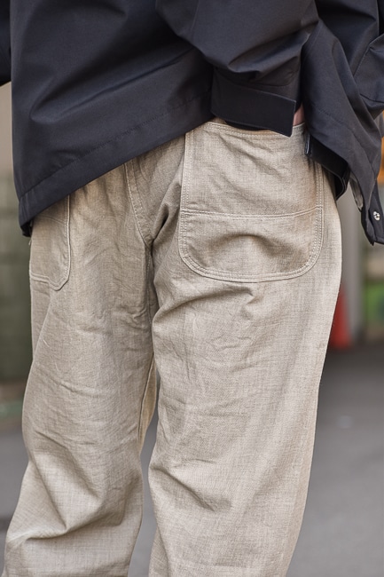 時代の流行に合わせてリニューアルしたブランドの定番ボトムス、ピーターパンツの生地をアレンジした今作は、今シーズンから丈が長くなりマイナーチェンジしております。