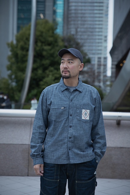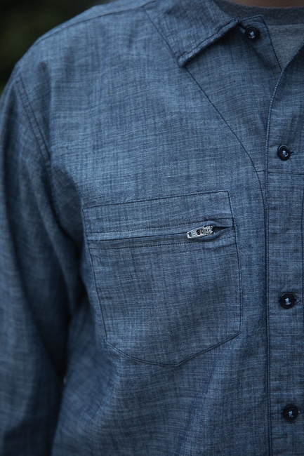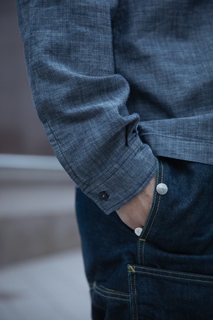 こちらは樹脂加工を施した4.75オンスのコットンシャンブレーを使用したライトな仕上がり。