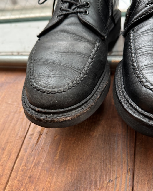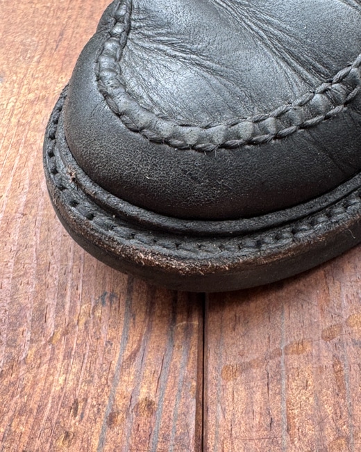 毎日見ているとなかなか気づかないもんですが、アッパーの乾燥やコバのダメージは靴の寿命と見た目に直結します。