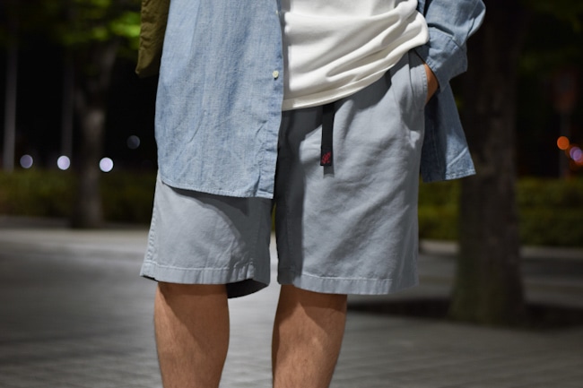 差し詰めグレーなショーツカラーとシャンブレーの優しいブルーがトゥーマッチ。