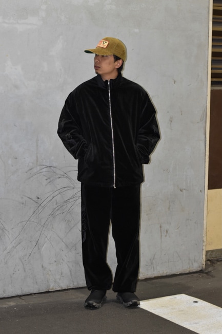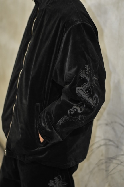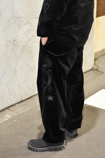 同素材のボトムスにも龍が採用されており、セットアップにての着用可能です。