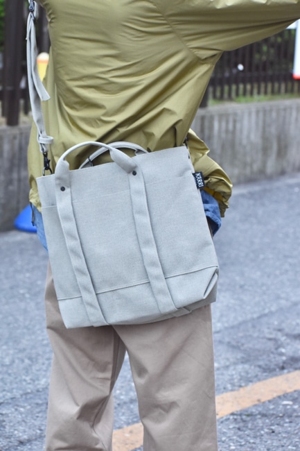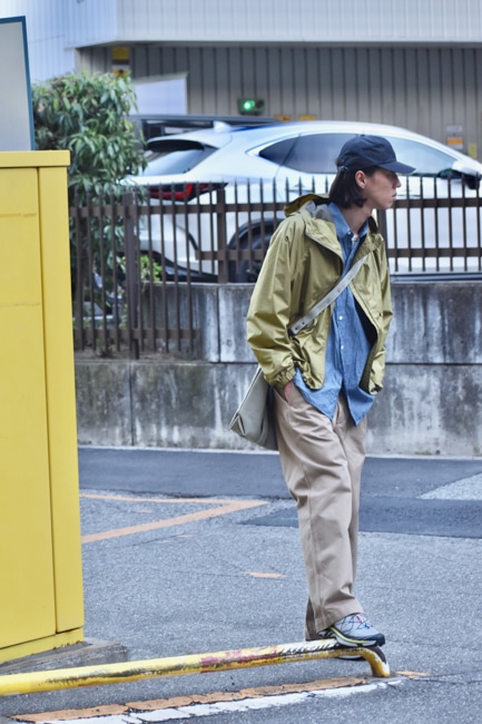 個人的には、ハイテクスニーカーを化繊のパンツではなく、スラックスやチノパンと